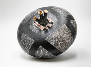 sculptural vessels associated with sojourning. In my ceramic sculptures, I use specific elements,