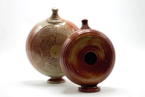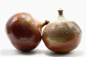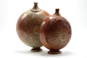 I am interested in how cultures use the human body as a canvas and a symbol of identity. In this group of work, I am examining the relationship between the physical form of the human body and surface embellishment, drawing connections between diverse cultures and my personal history. My process begins with constructing hand-built and wheel-thrown forms, then altering them by carving linear patterns on their surface. I use my work as a metaphor to investigate the delicate balance and tension between traditional and contemporary culture.